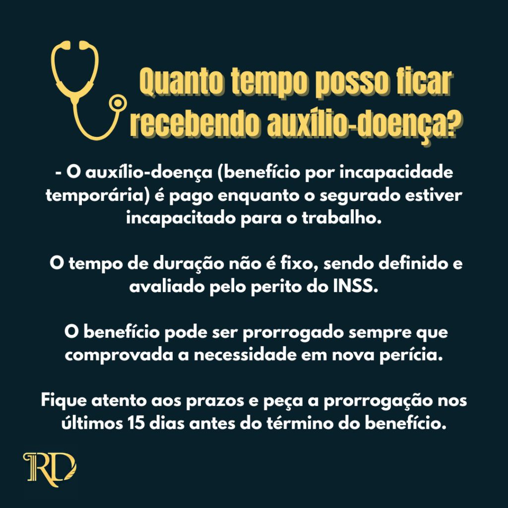 Você pode receber o auxílio-doença pelo tempo que for necessário, desde que sua incapacidade esteja comprovada pelas perícias do INSS. Mantenha-se atento aos prazos e, se ainda não estiver apto ao trabalho, solicite a prorrogação dentro do período correto.